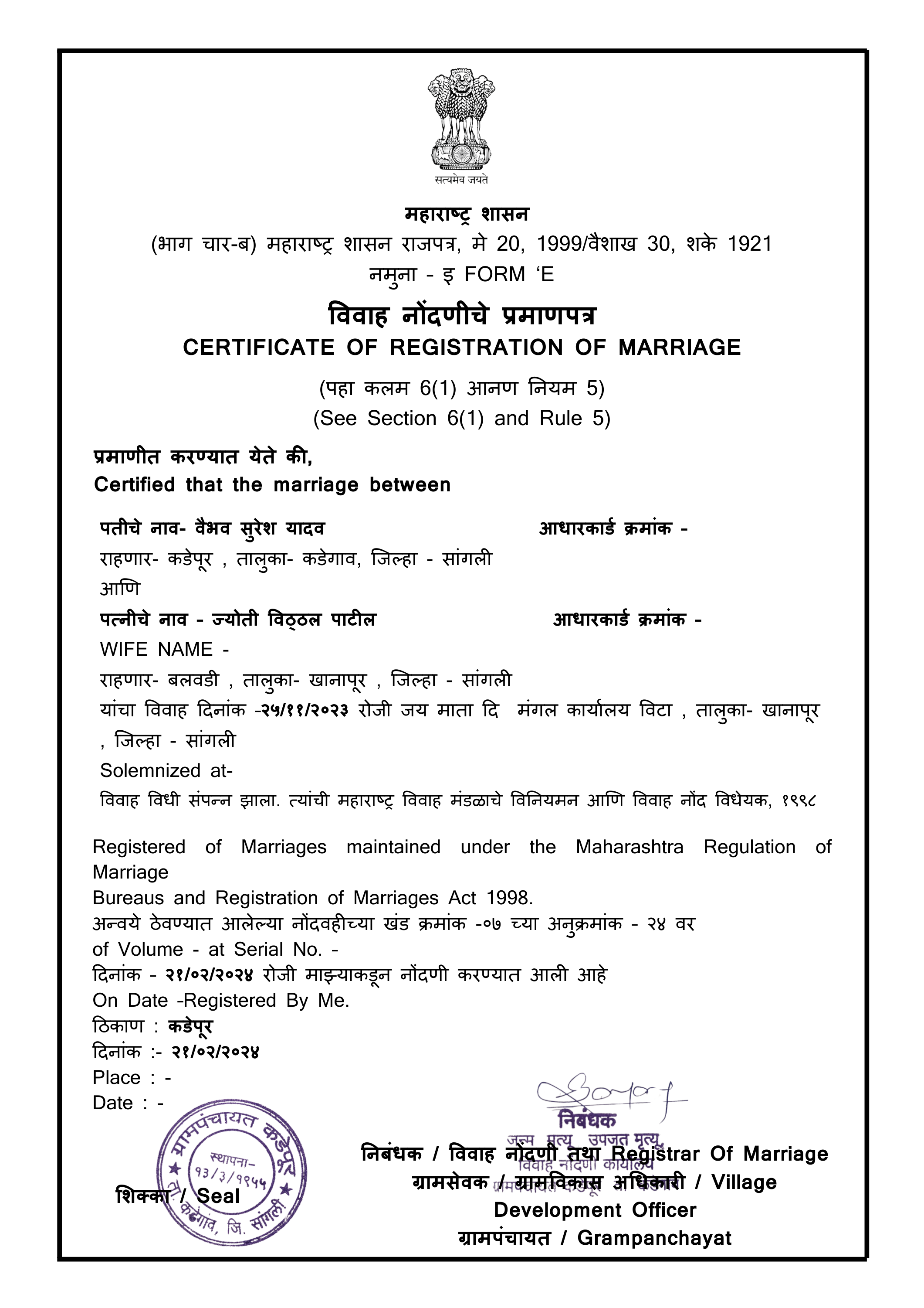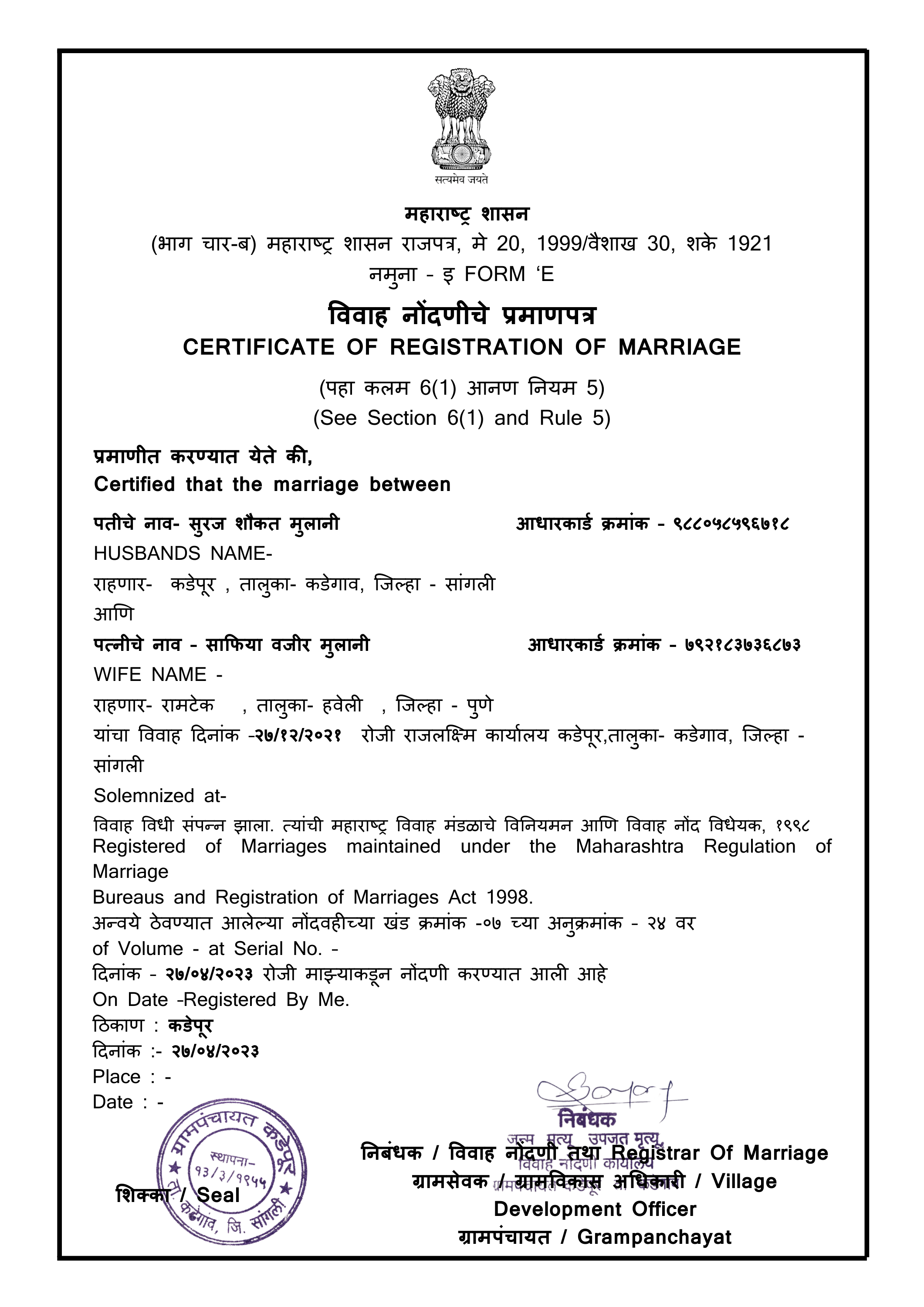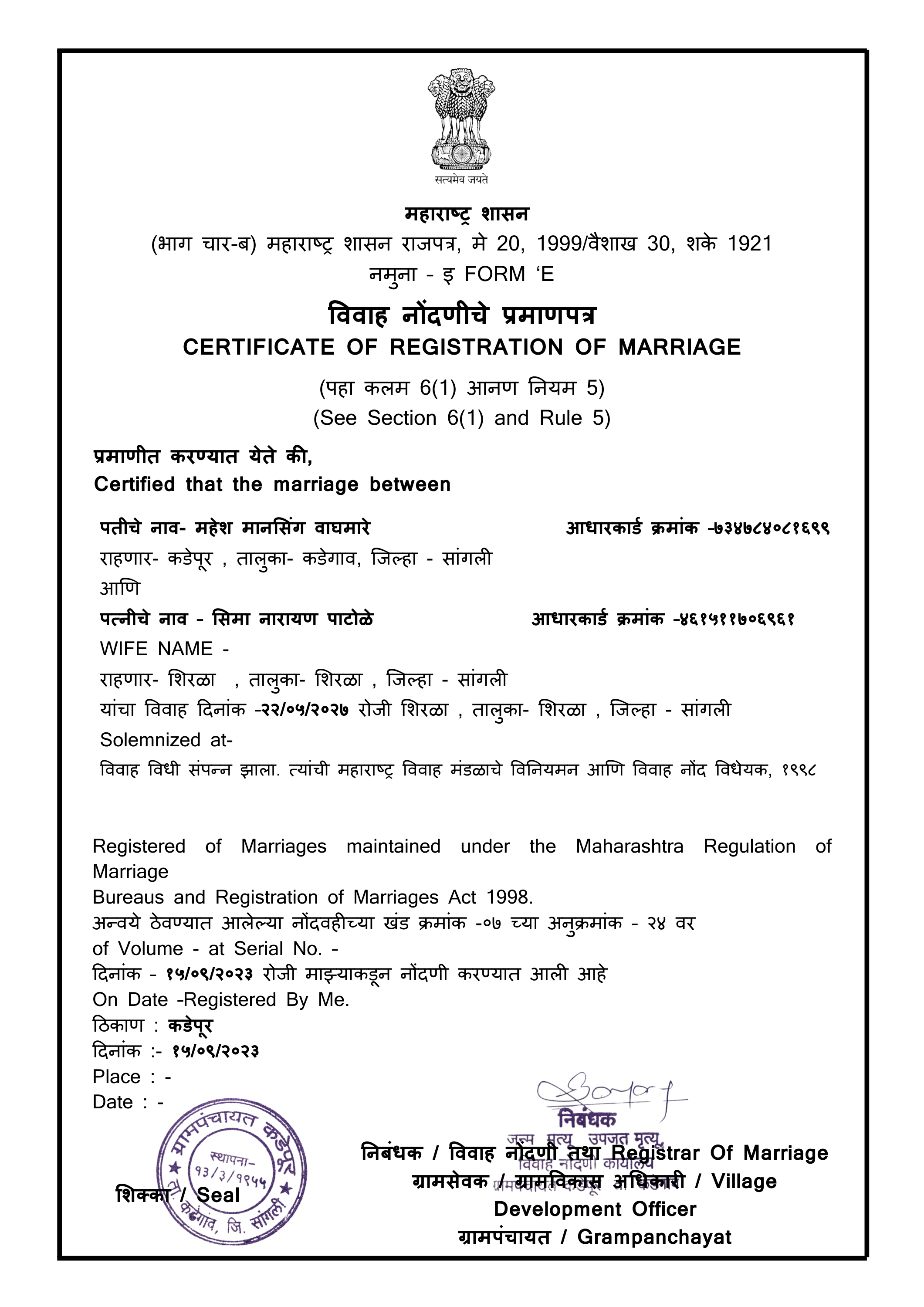 आपण विवाह प्रमाणपत्र साठी खाली दिलेल्या ऑनलाइन फॉर्म मध्ये अर्ज करू शकता. त्यासाठी कृपया अगोदर 20/- अर्जाची फी ऑनलाइन प्रणाली द्वारे येथे दिलेला QR कोड स्कॅन करून अदा करावी व त्याचा स्क्रीनशॉट काढून ठेवा. सोबत येणारा UTR नंबर देखील कॉपी करून ठेवा. आपणास फॉर्म भरतांना स्क्रीनशॉट व UTR नंबर भरणे अनिवार्य आहे.