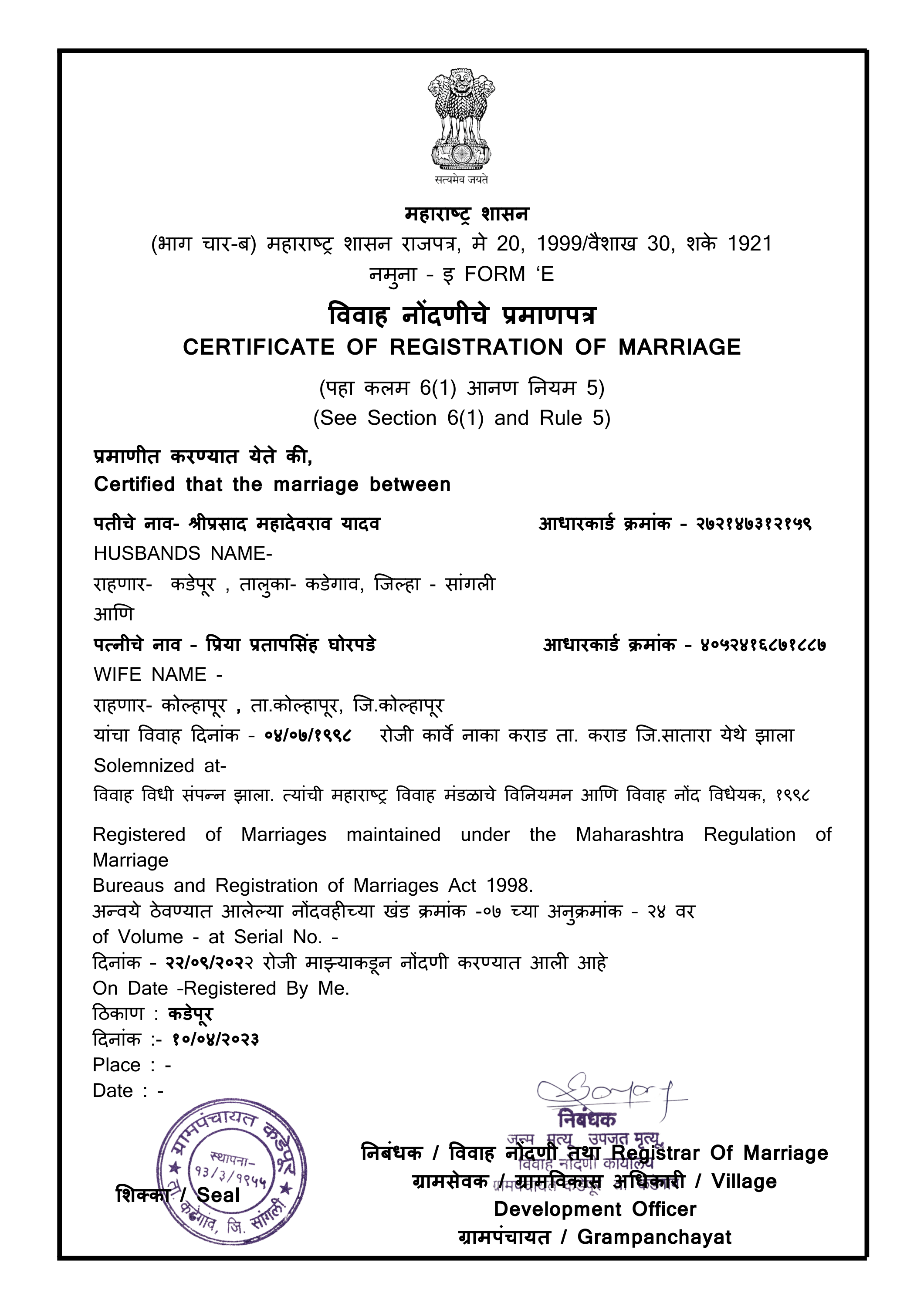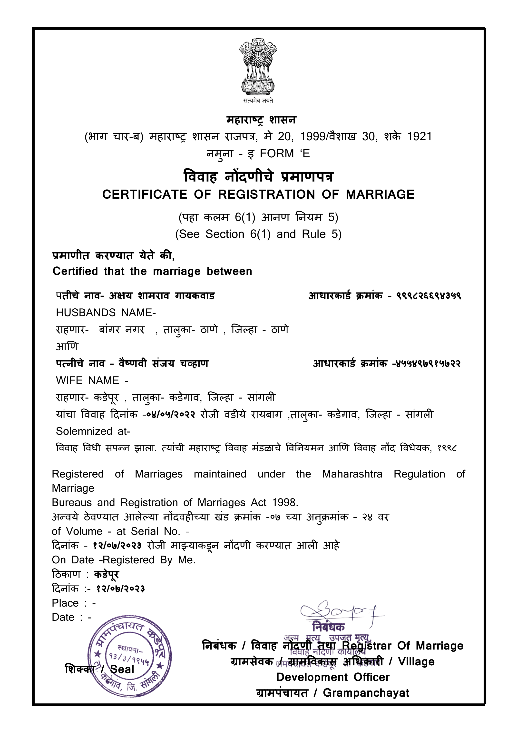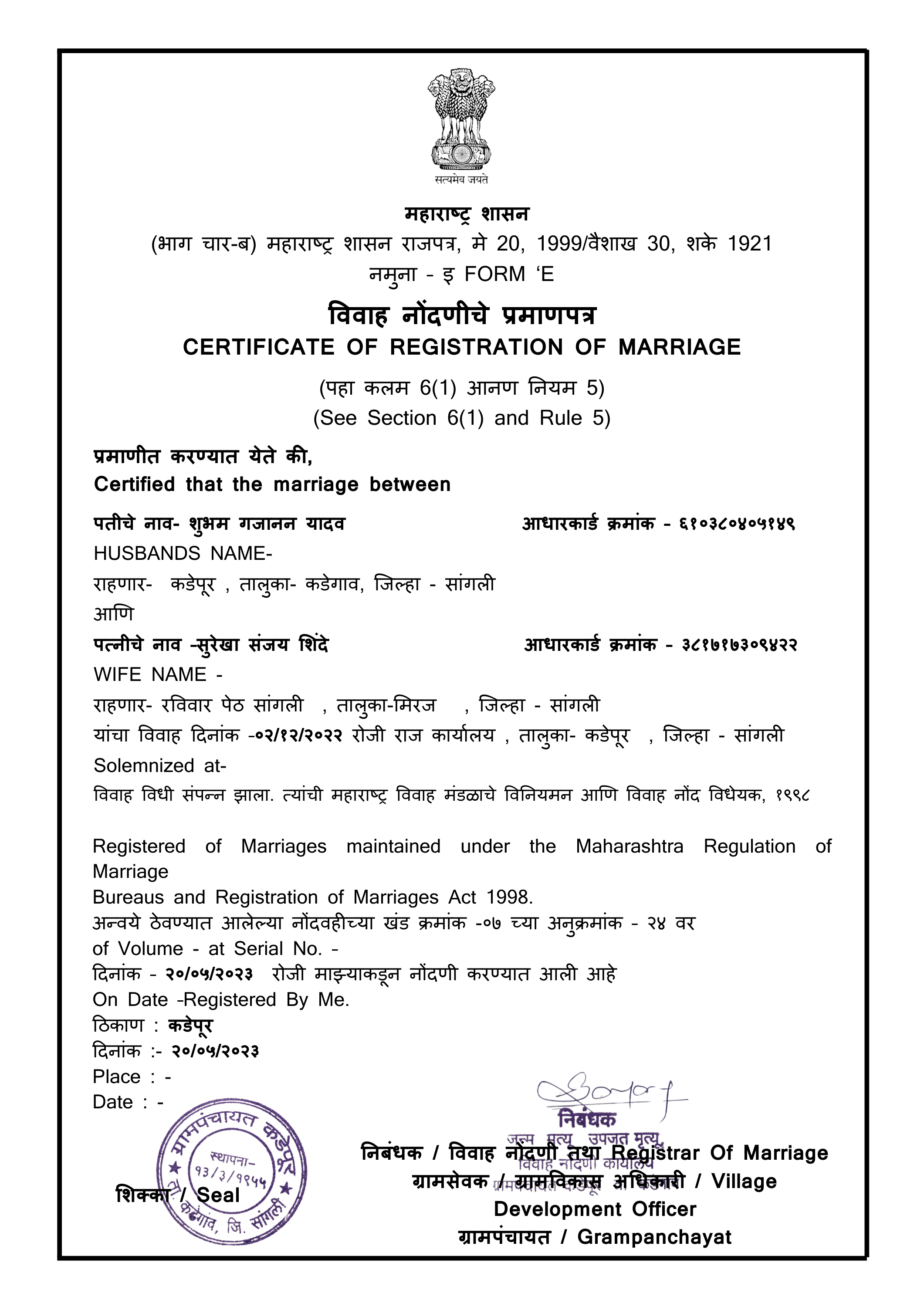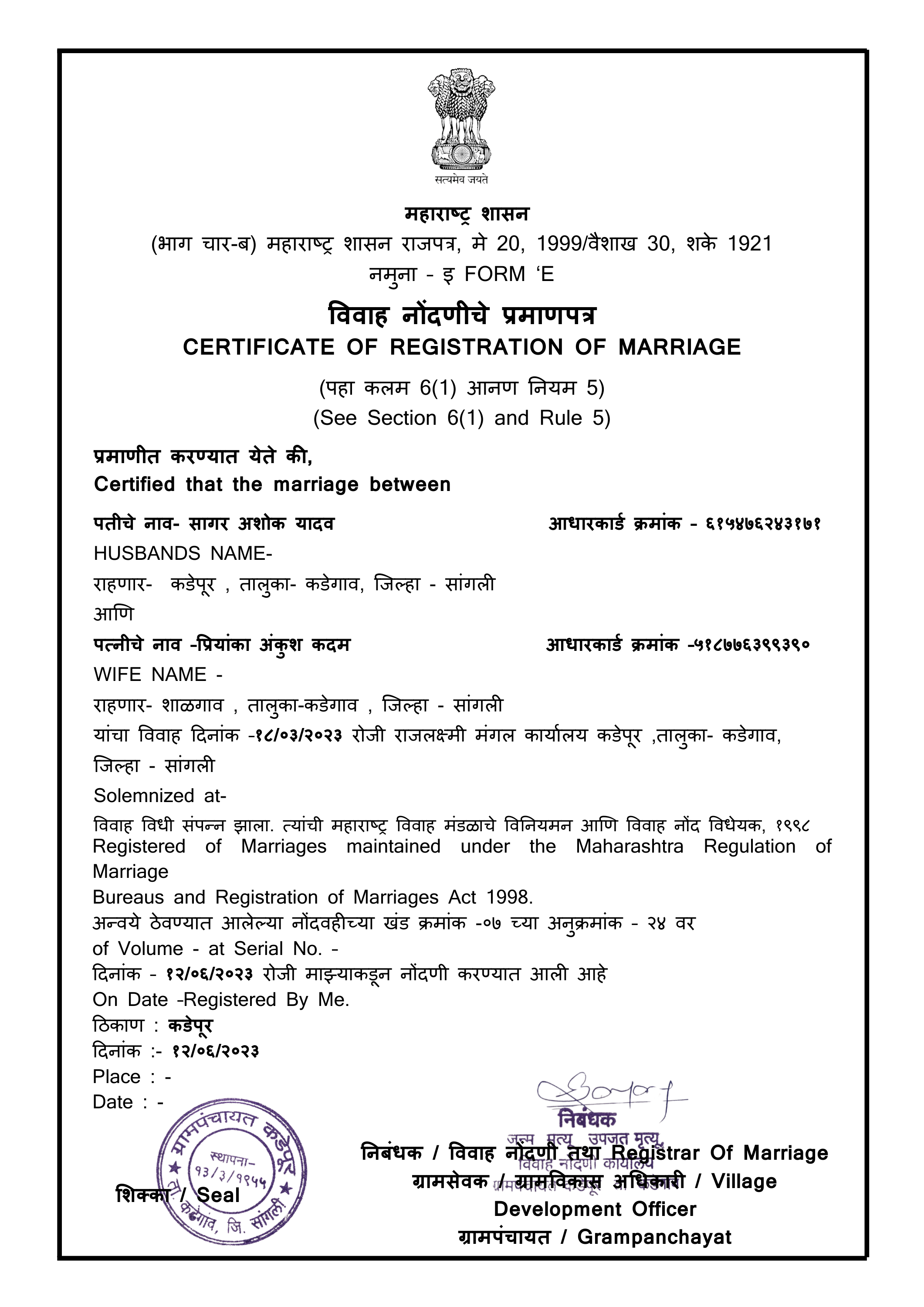 आपण विवाह प्रमाणपत्र साठी खाली दिलेल्या ऑनलाइन फॉर्म मध्ये अर्ज करू शकता. त्यासाठी कृपया अगोदर 20/- अर्जाची फी ऑनलाइन प्रणाली द्वारे येथे दिलेला QR कोड स्कॅन करून अदा करावी व त्याचा स्क्रीनशॉट काढून ठेवा. सोबत येणारा UTR नंबर देखील कॉपी करून ठेवा. आपणास फॉर्म भरतांना स्क्रीनशॉट व UTR नंबर भरणे अनिवार्य आहे.